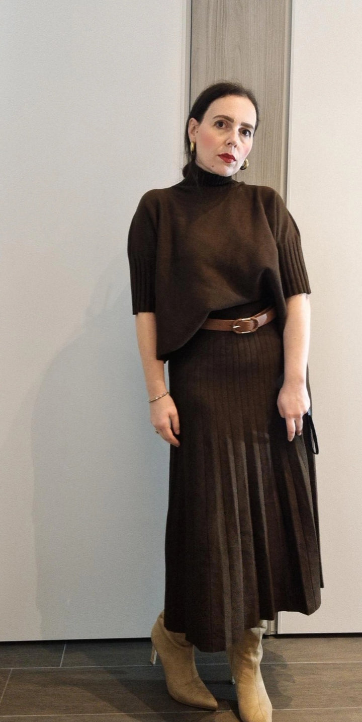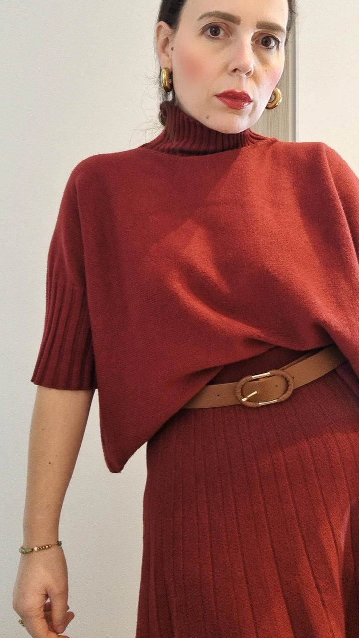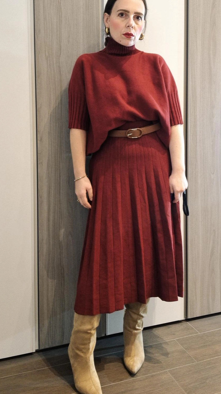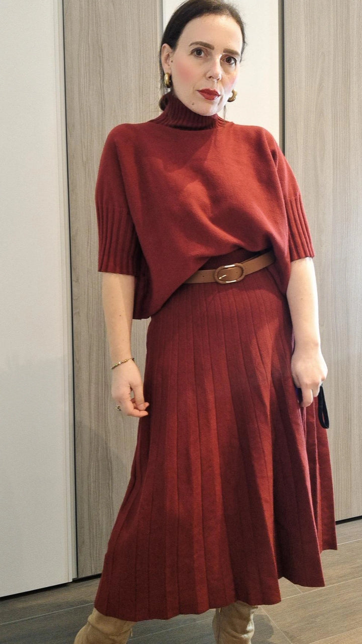 Coordinato in maglia con gonna 7/8 plissé in tessuto elastico