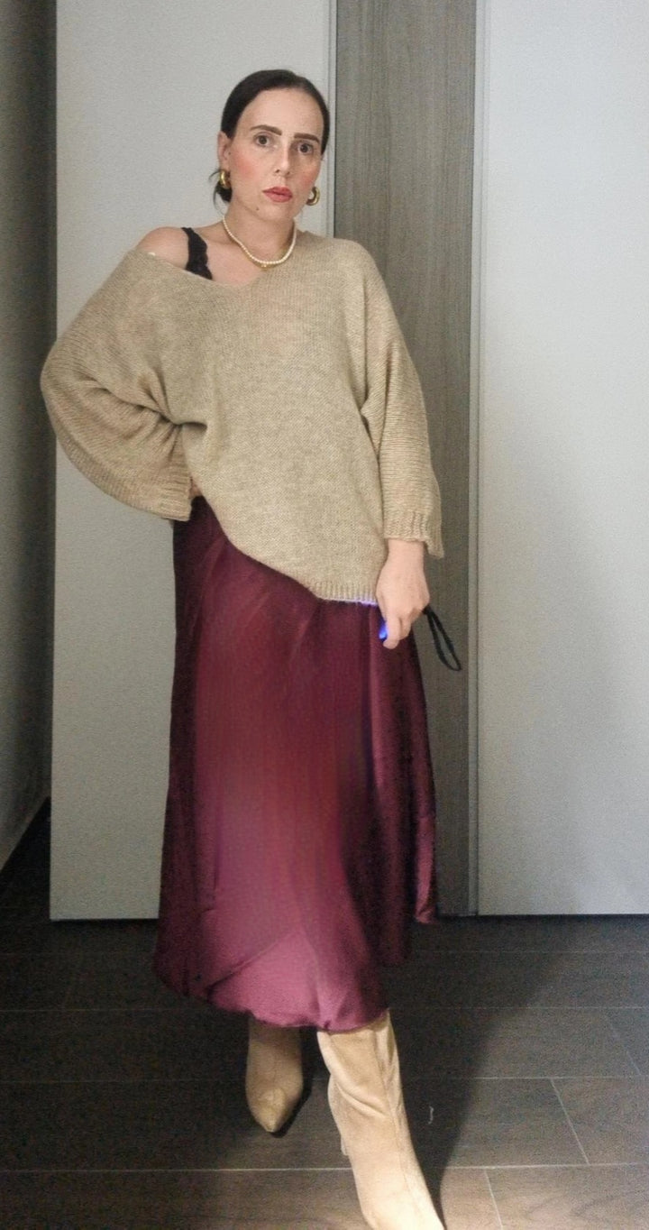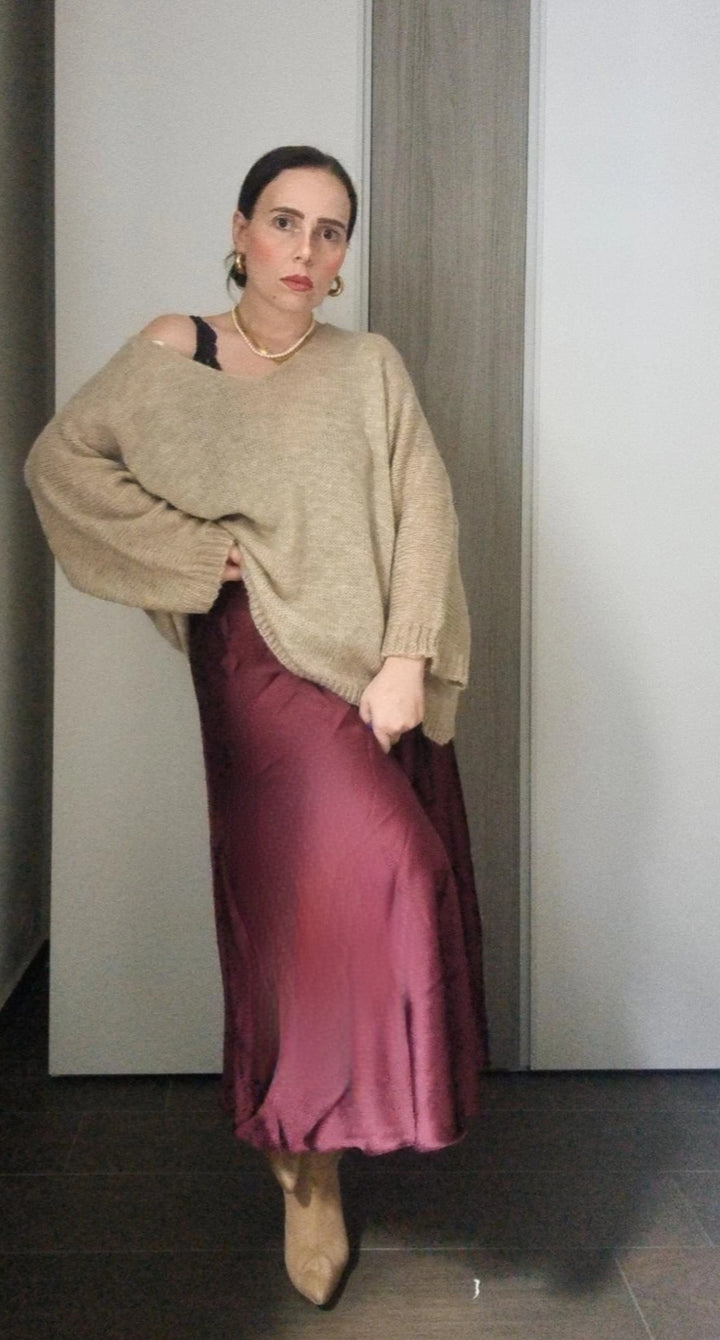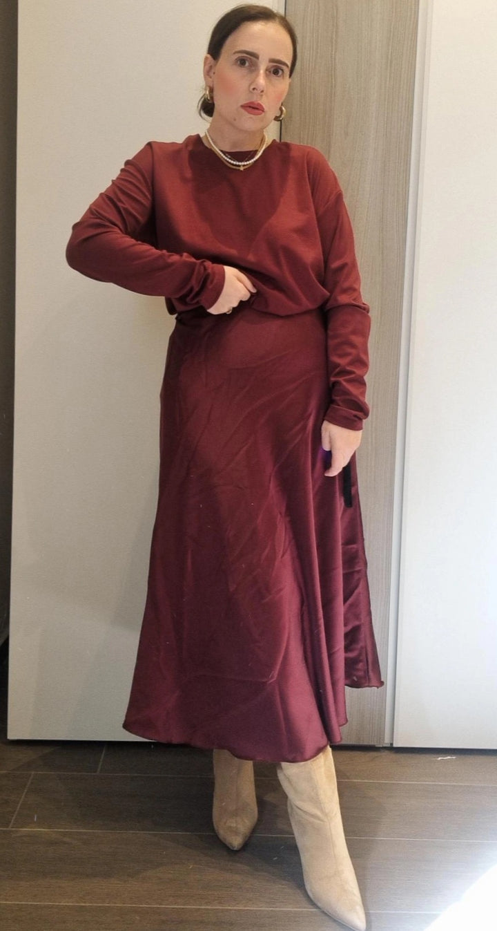 Gonna lunga 7/8 effetto satin con elastico in vita