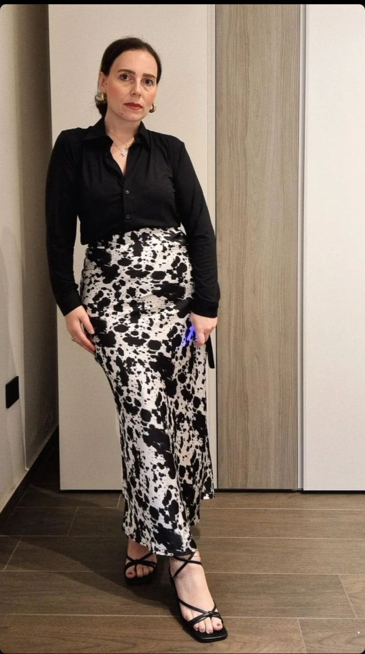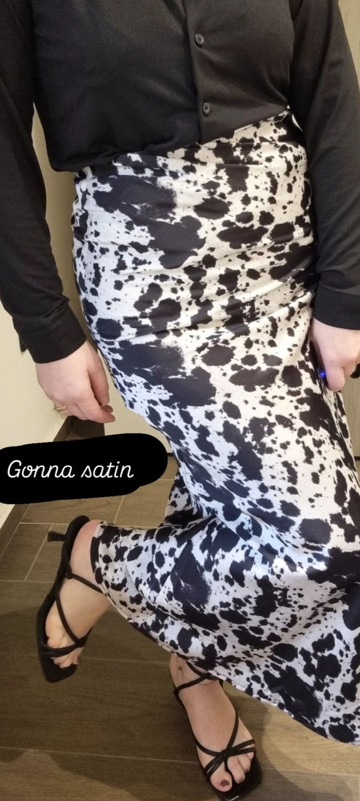 Gonna satin lunga linea dritta con elastico in vita nascosto