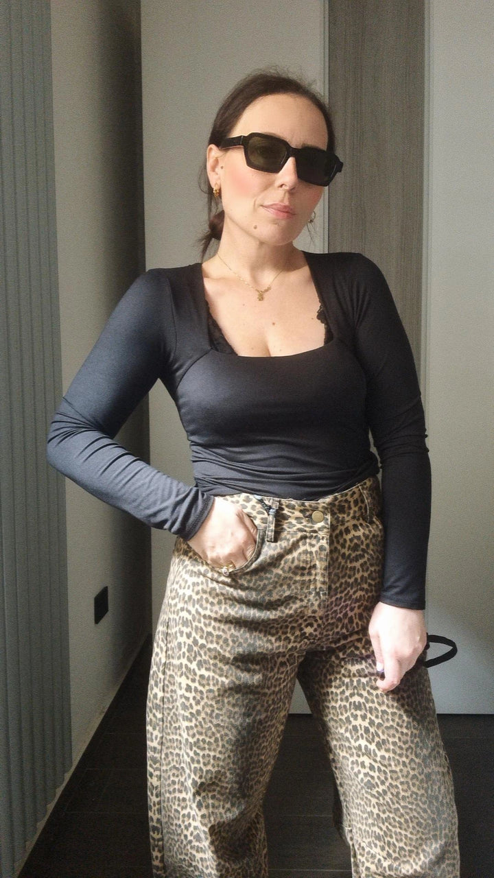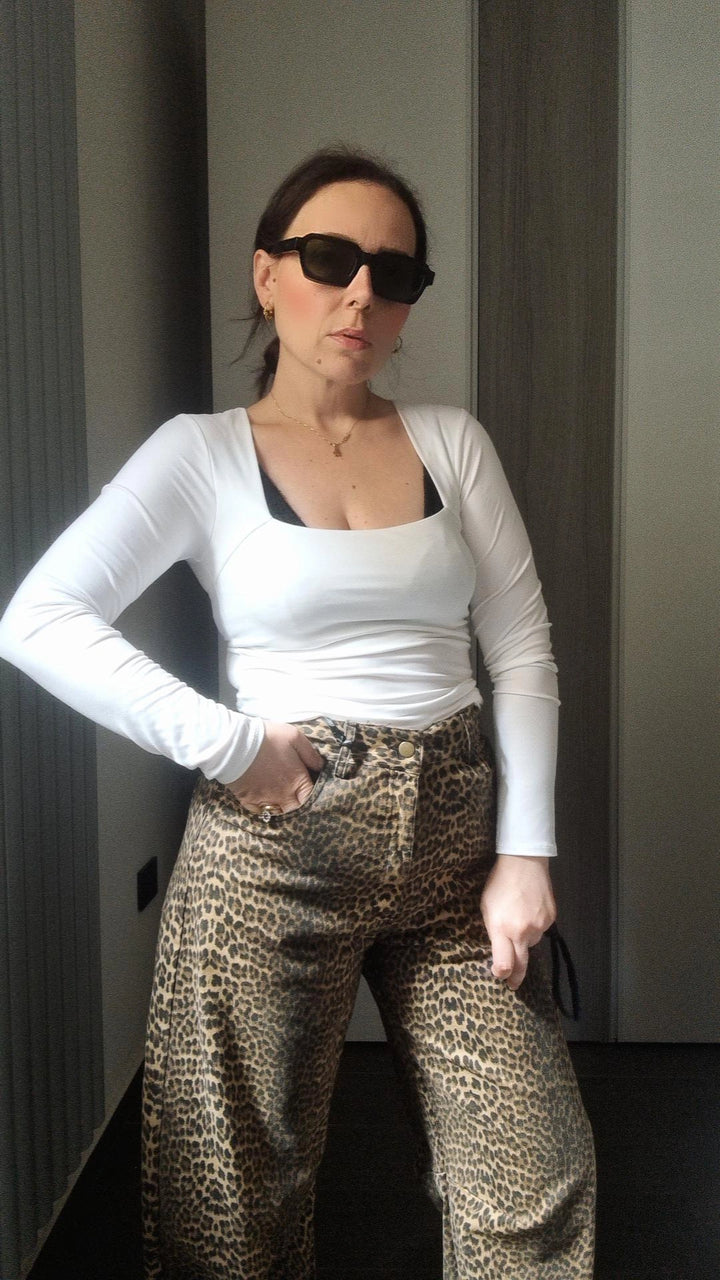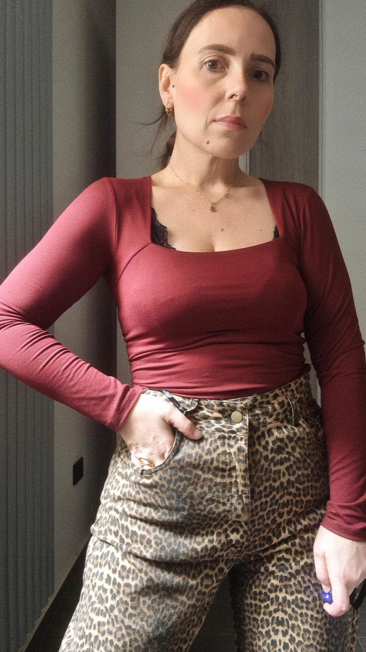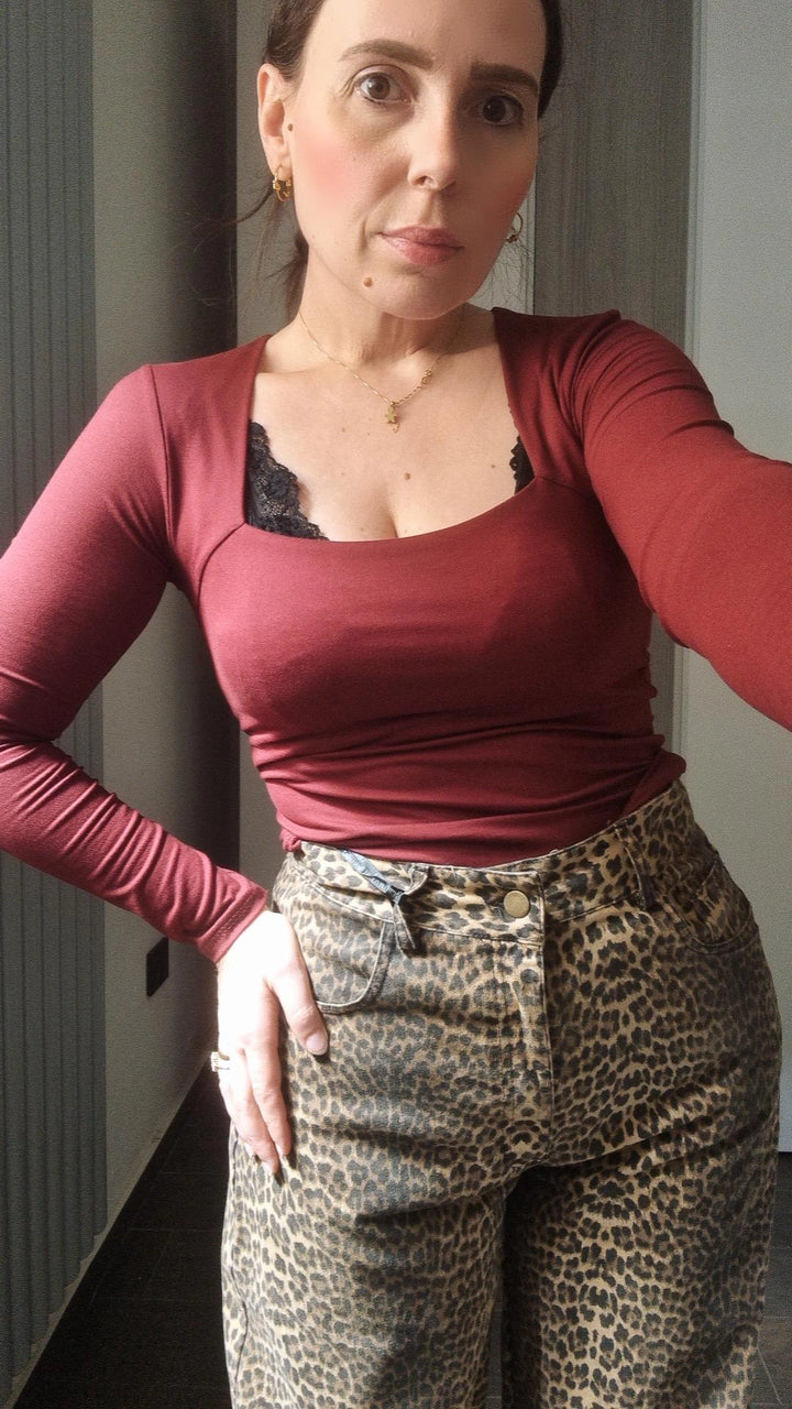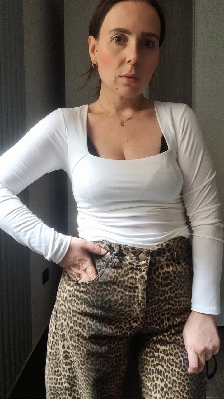 Maglia basic Manica lunga scollo quadrato tessuto elastico