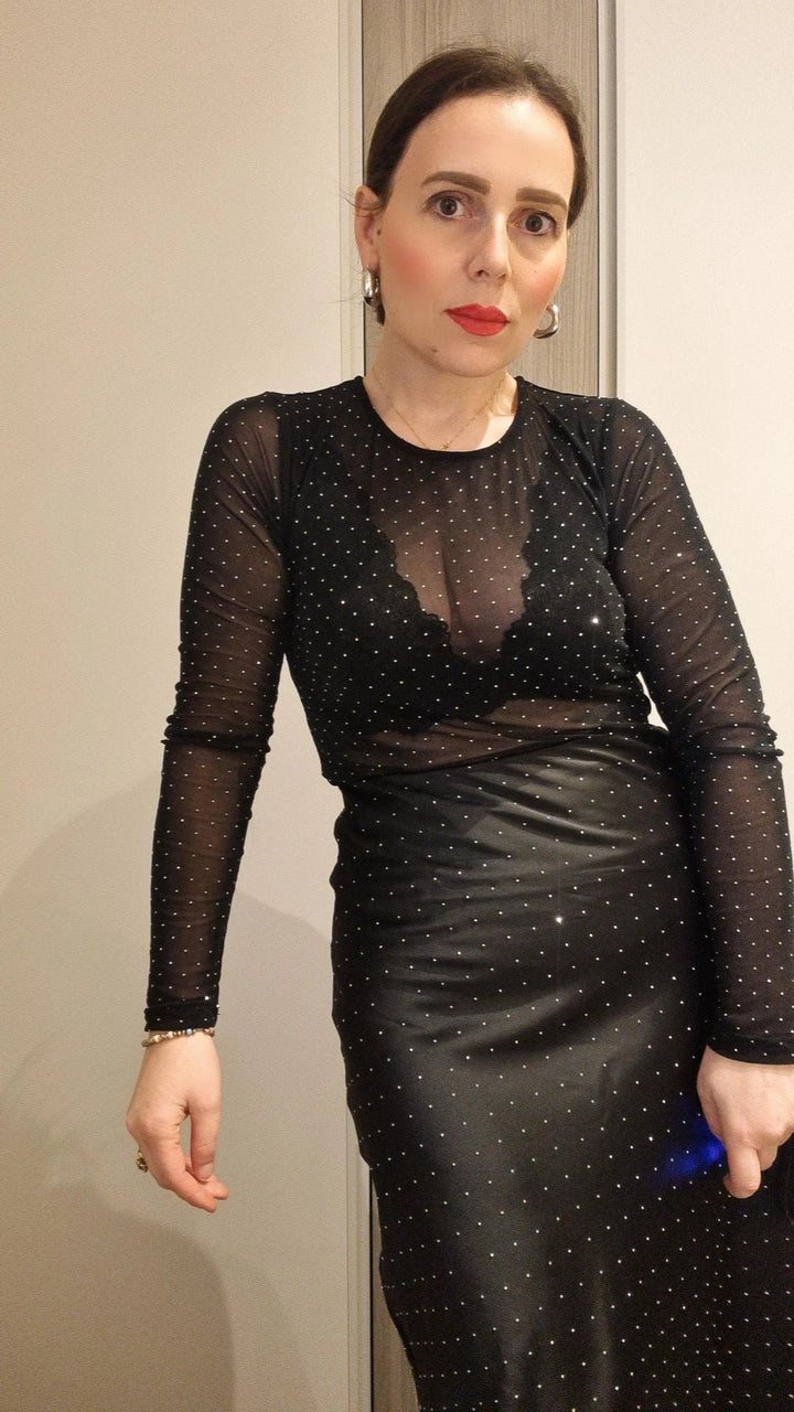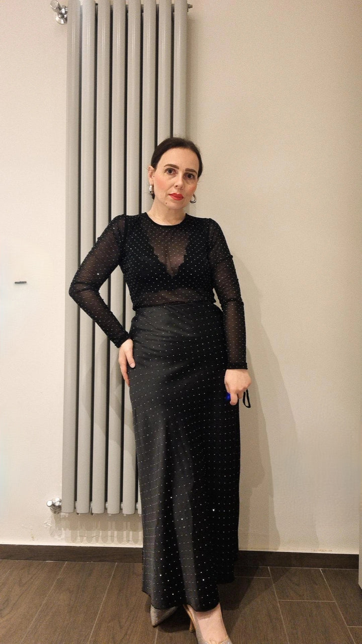 Maglia basic velata girocollo manica lunga con strass