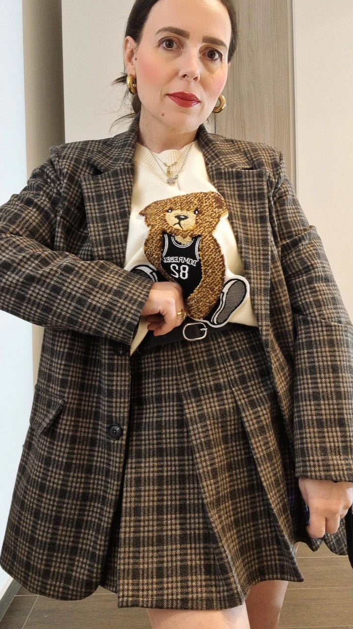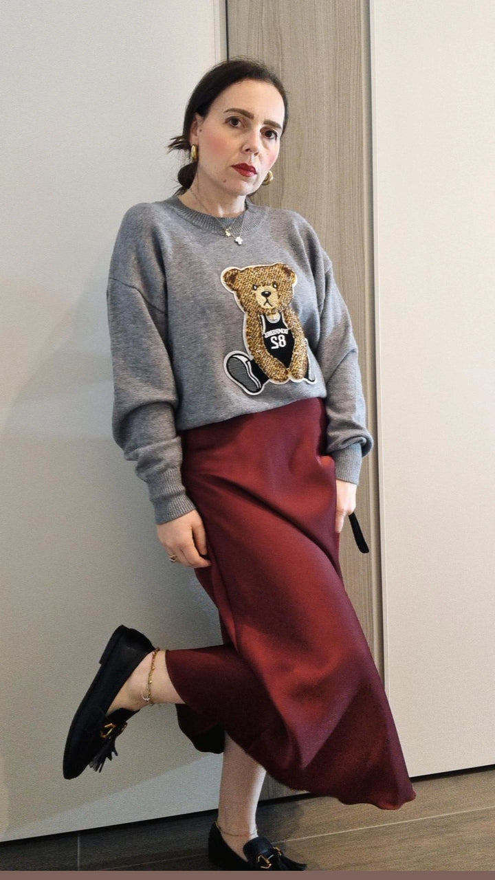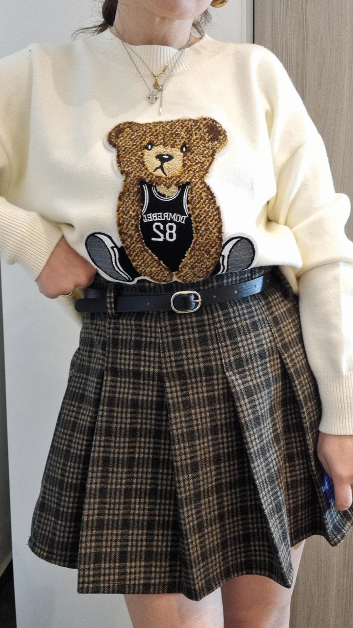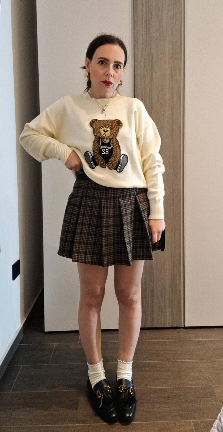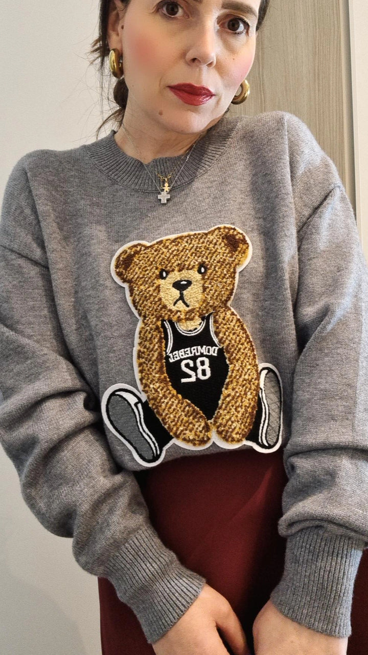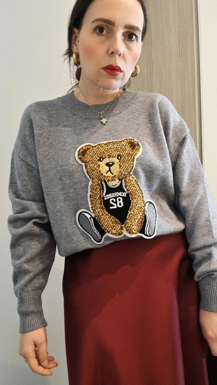 Pullover in maglia morbida con applicazione Teddy sul davanti