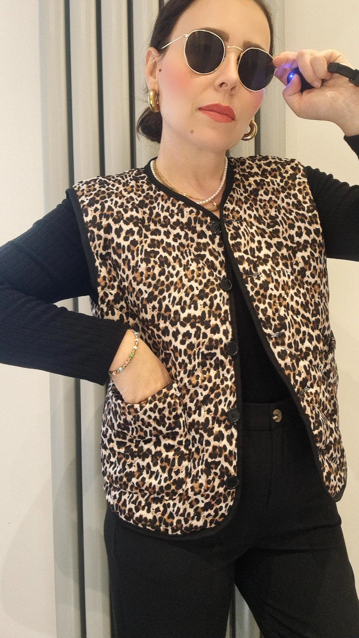 Giacca trapuntata antivento smanicata con bottoni e tasche frontali