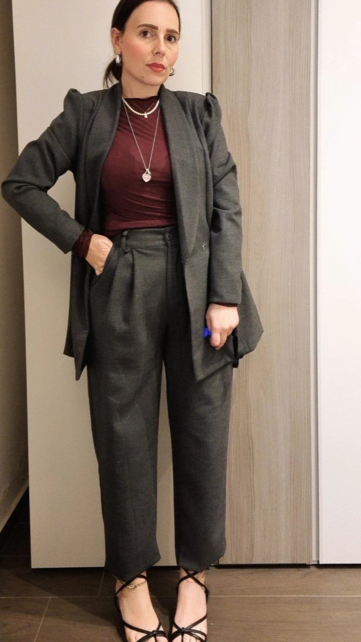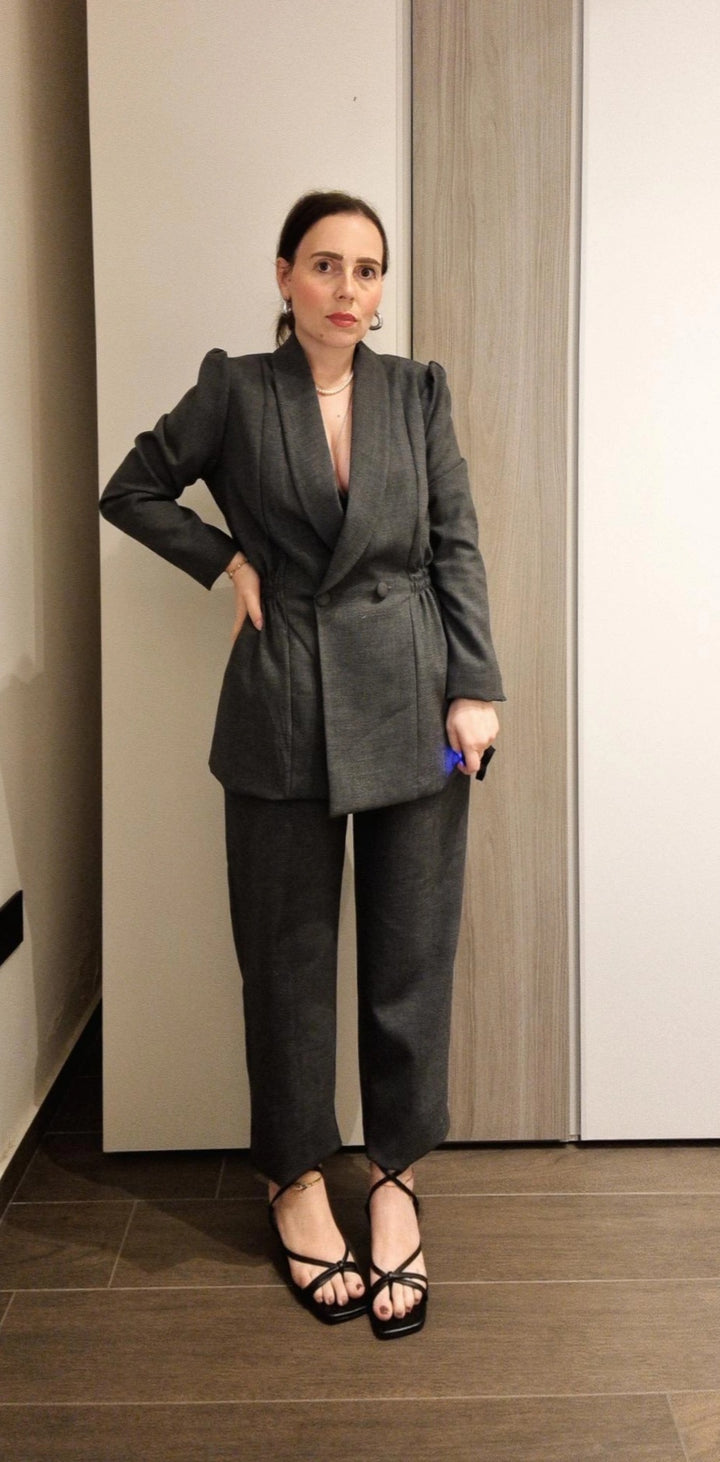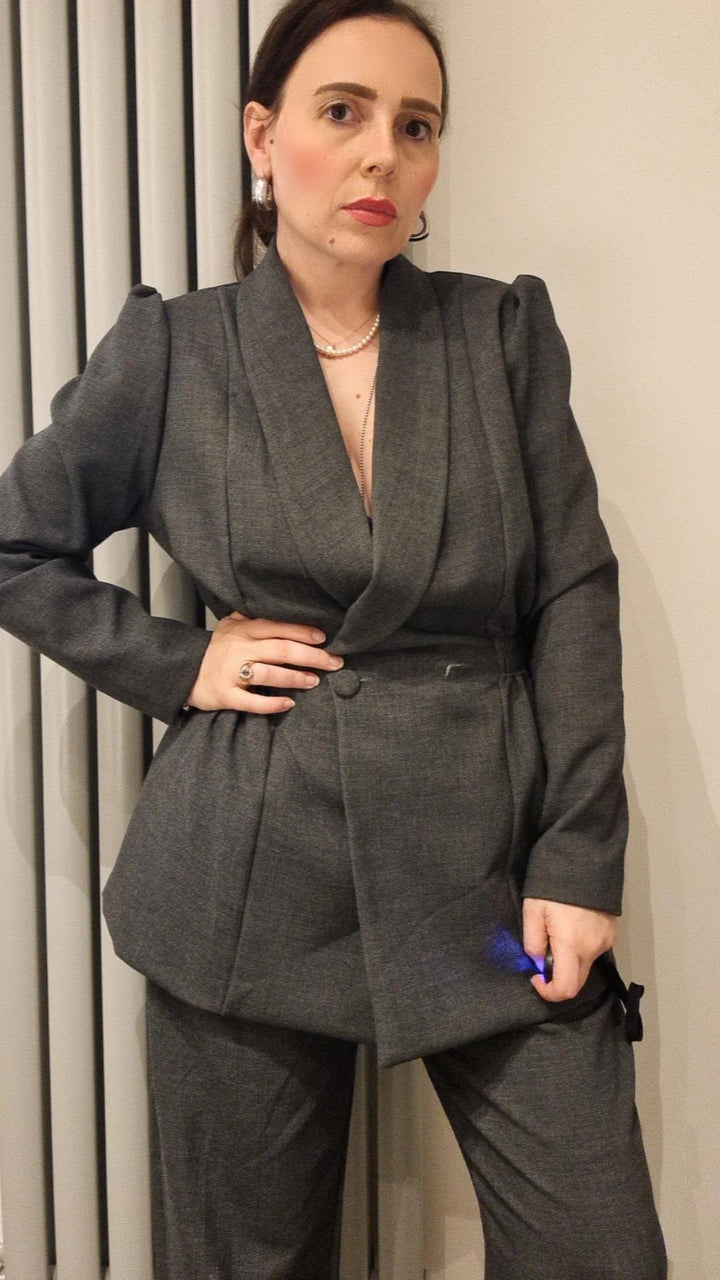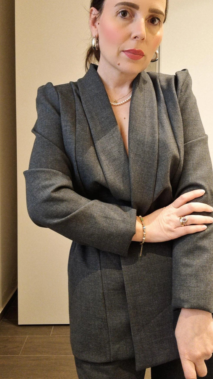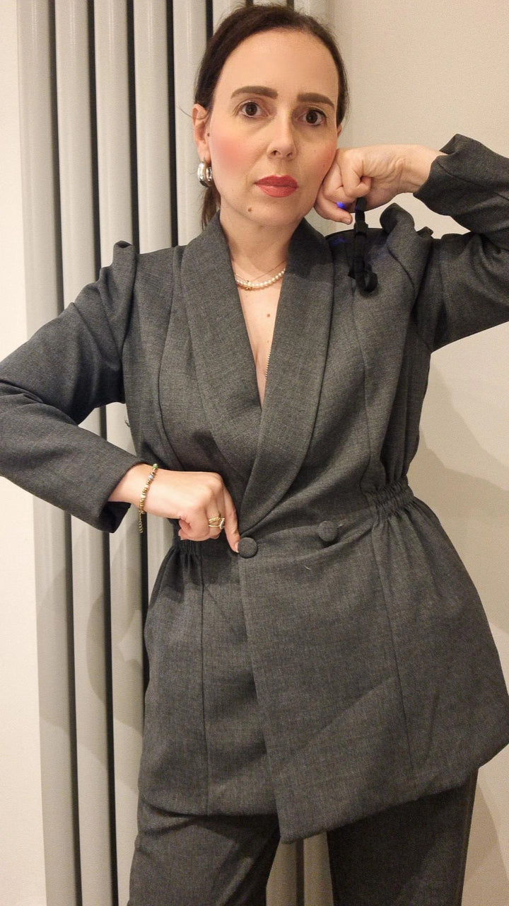 Il seguente tailleur solo nel colore grigio è in pre ordine (tempo di consegna 7/10 giorni